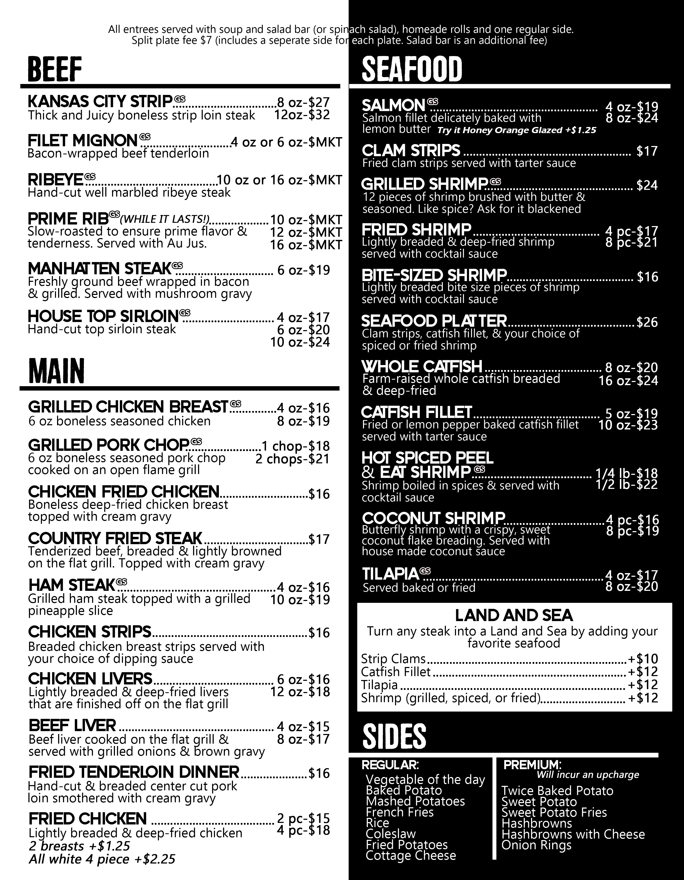 All-you-can-eat Soup and Salad bar comes with all the evening entrees.